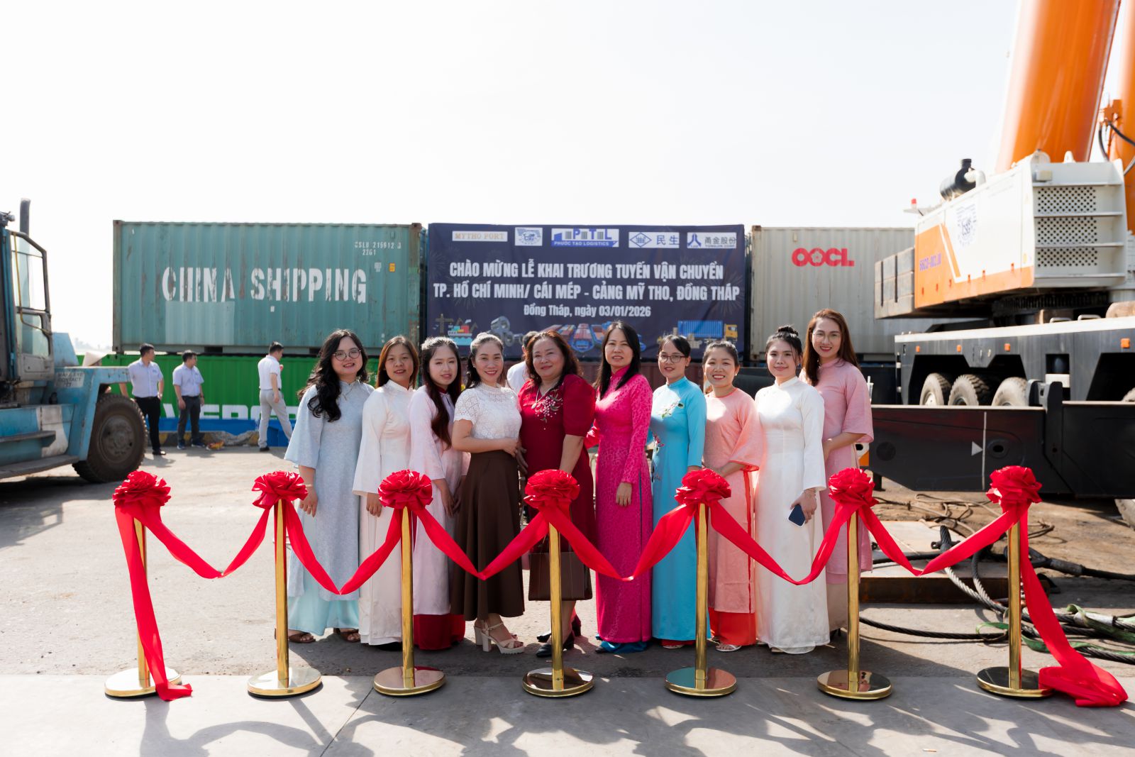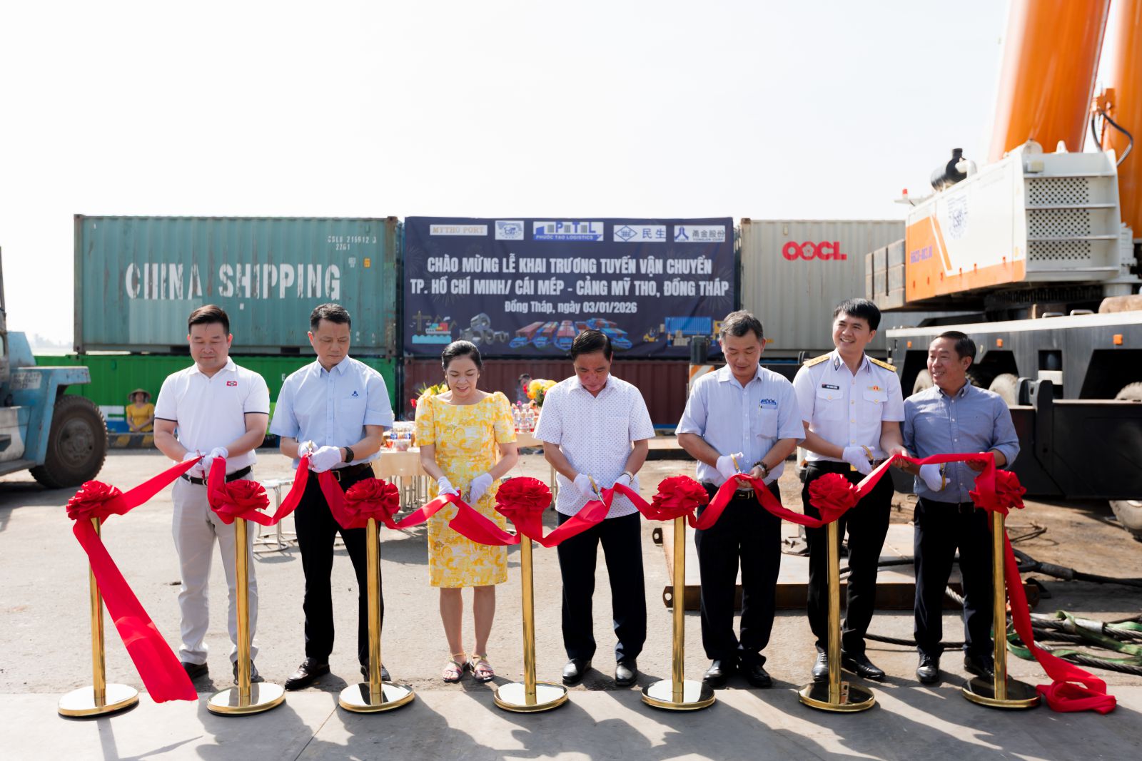 Nghi thức cắt băng khánh thành, đánh dấu thời điểm tuyến vận chuyển mới TP. Hồ Chí Minh / Cái Mép đi Cảng Mỹ Tho của Công ty Cổ Phần Tiếp Vận Phước Tạo chính thức đi vào hoạt động.