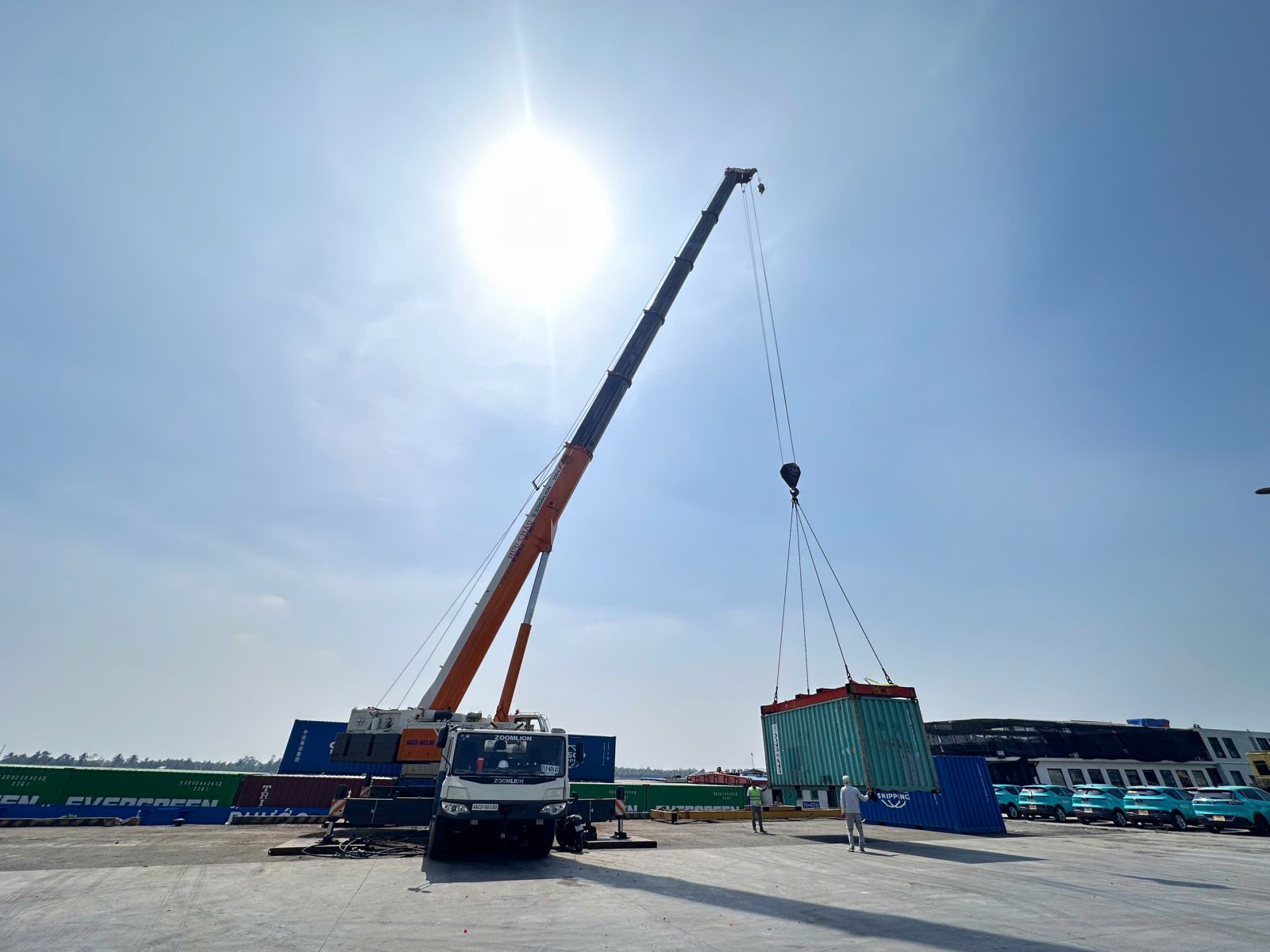 Hệ thống trang thiết bị phục vụ làm hàng như cẩu chuyên dụng, xe nâng, xe đầu kéo cùng đội ngũ điều hành và vận hành được bố trí đầy đủ, sẵn sàng phục vụ hoạt động tiếp nhận, xếp dỡ và vận chuyển hàng hóa ngay trong ngày khai trương.